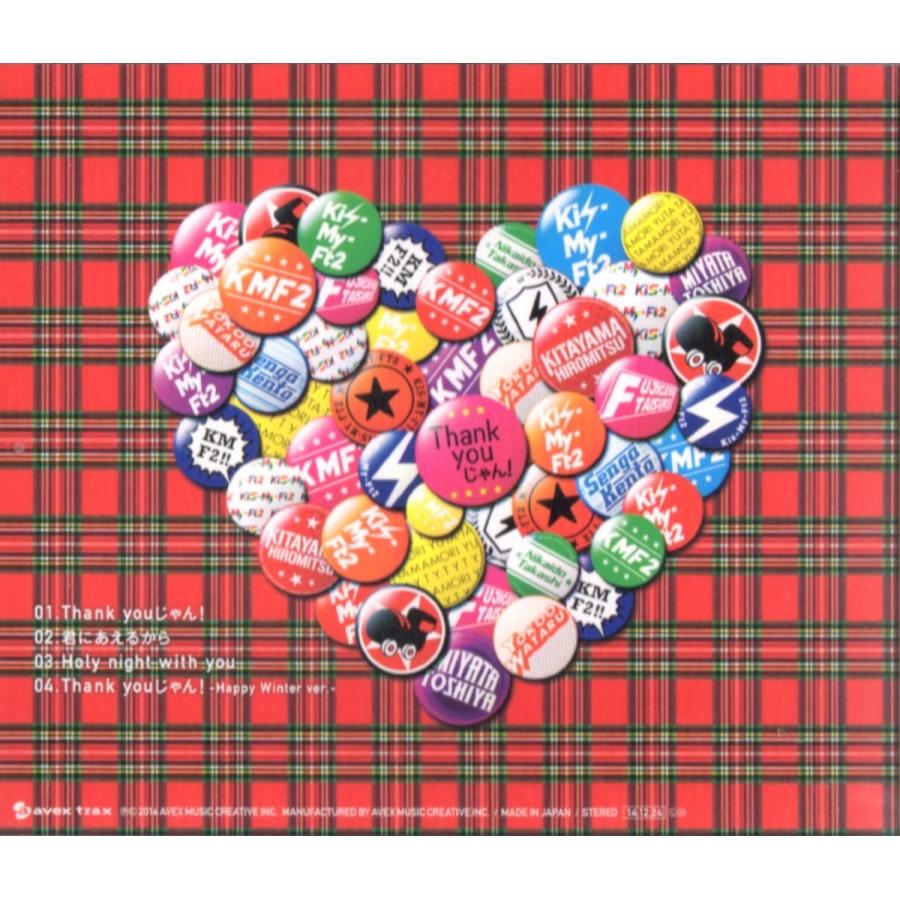 Kis my ft2 thank you じゃん. (Thank youじゃん!) マルチアングル (PV) 2 PV & Jacket. 初回生産限定盤A (CDDVD) KisMyFt2 CD ¥1,503 残り3点(入荷予定あり) この商品は、Amazoncojpが販売および発送します。 送料 ¥510. DVD付初回限定盤 ACD / KisMyFt2 (キスマイフットツー) 商品番号:AVCD191 ご注文前に必ずご確認ください <収録曲> <内容> JAN: ・商品重量合計800g未満 ・商品同梱は2点まで メンバーが教える!!振り付け映像「Thank youじゃん!」企画 Thank youじゃん!.