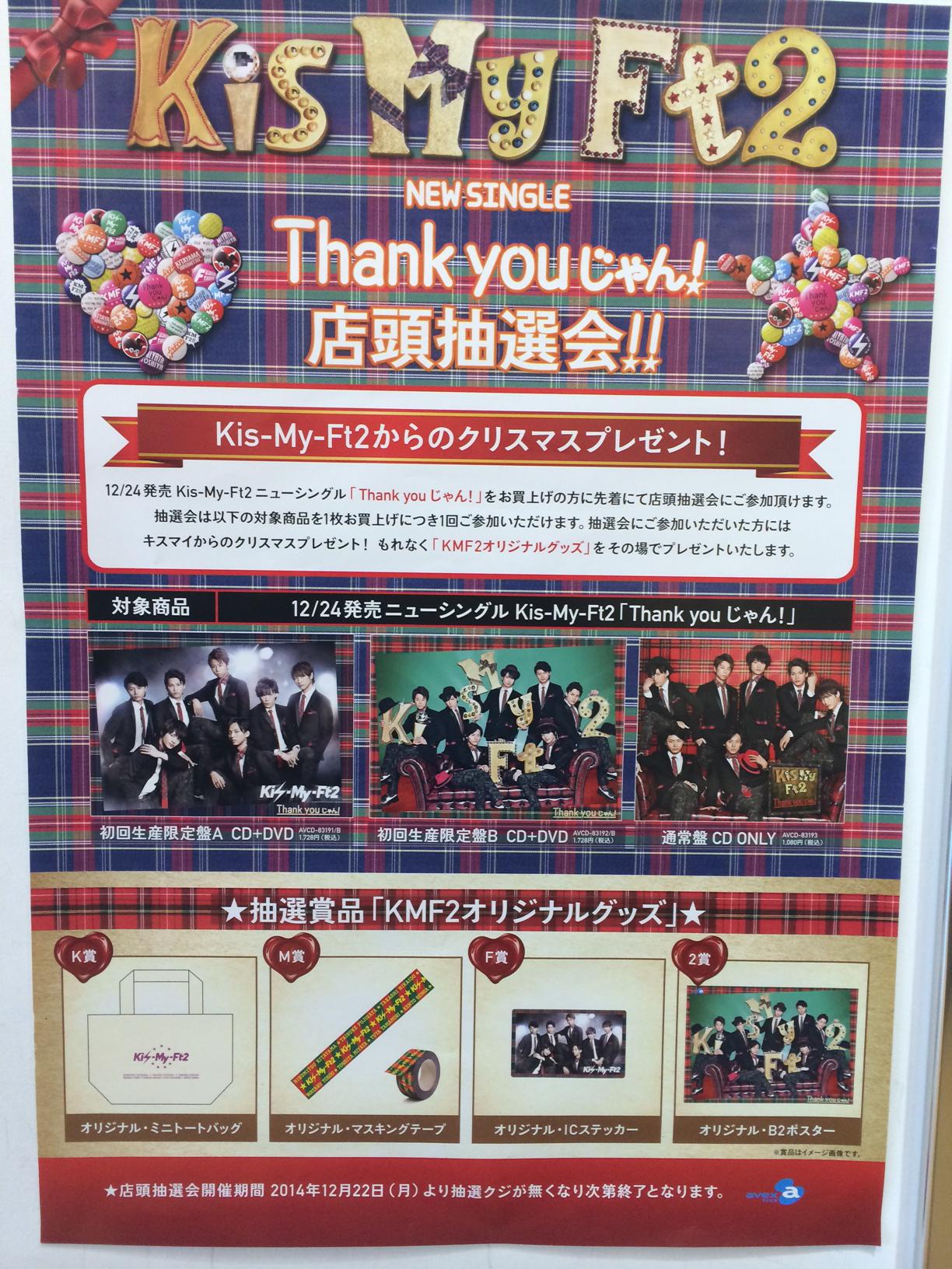 Hmv大宮アルシェ V Twitter Kis My Ft2 12 24発売ニューシングル Thank Youじゃん 入荷いたしました 販売開始してます 先着でキスマイからのクリスマスプレゼント 店頭抽選会を実施中 無くなり次第終了となりますのでお早めにご来店下さい Http T Co
