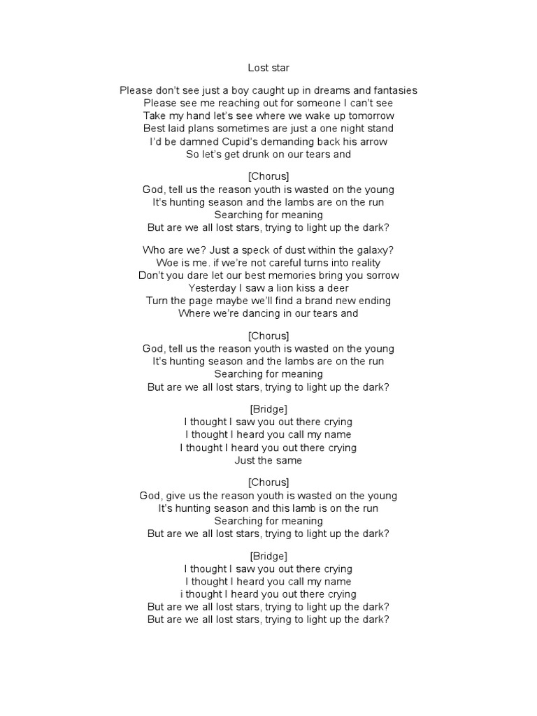 Maroon 5 Lyrics "Lost Stars" (performed by Adam Levine) Please don't see Just a boy caught up in dreams and fantasies Please see me Reaching out for someone I can't see Take my hand, let's see where we wake up tomorrow Best laid plans sometimes are just a one night stand. It’s like a prestige thing?. Stray Kids(스트레이 키즈) "神메뉴" M/VStray Kids THE 1ST ALBUM "GO生"iTunes & Apple Music https//appleco/3ebMDYjSpotify https//spotifi/3ddIDVTStray.