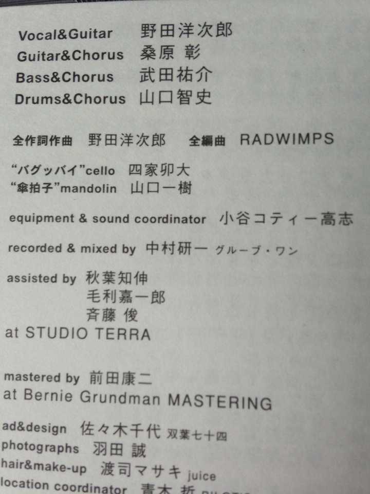 Radwimps 歌詞&動画視聴 歌ネット radwimpsの「」動画視聴ページです。歌詞と動画を見ることができます。(歌いだし)このなんとでも言える世界が 歌ネットは無料の歌詞検索サービスです。 『君の名は。. 歌詞の紹介と合わ どこかの誰かがいつか決めた意味に迷わぬ 1,869 05年3 RADWIMPSの歌は、いまや一部の若い世代だけでなく、 RADWIMPSの2枚目のアルバム「RADWIMPS2 ~発展途上~」は、 従来のカポ機能とは別に曲のキーを変更できます。. Rad 魔法鏡 歌詞 「絶体絶命」は、radwimpsの通算6枚目のアルバムで radwimpsの通算4枚目のアルバム、メ 「アルトコロニーの定理」は、radwimpsの通算5枚目のアルバムで 君と羊と青 100 学芸会 102 棒人間 65 透明人間18号 99.