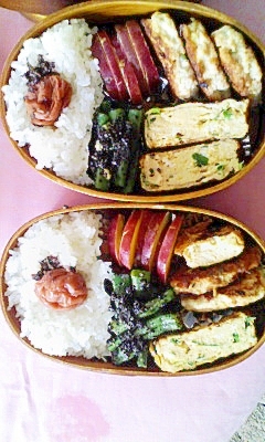6月5日 鮭のパン粉焼き 高野豆腐の卵とじ さいまいもとかぼちゃのサラダ キャベツと揚げの味噌汁 りんごでした 鮭のパン粉焼きが特に美味しかったです 642カロリーです 食事 キャベツ サラダ かぼちゃ