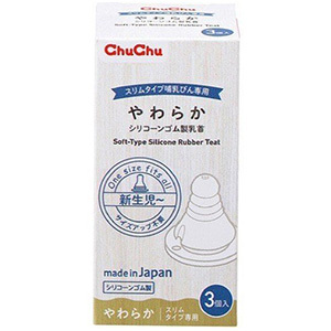 チュチュ やわらかシリコーンゴム製乳首 スリムタイプ 哺乳びん専用 3個入 E健康ショップ