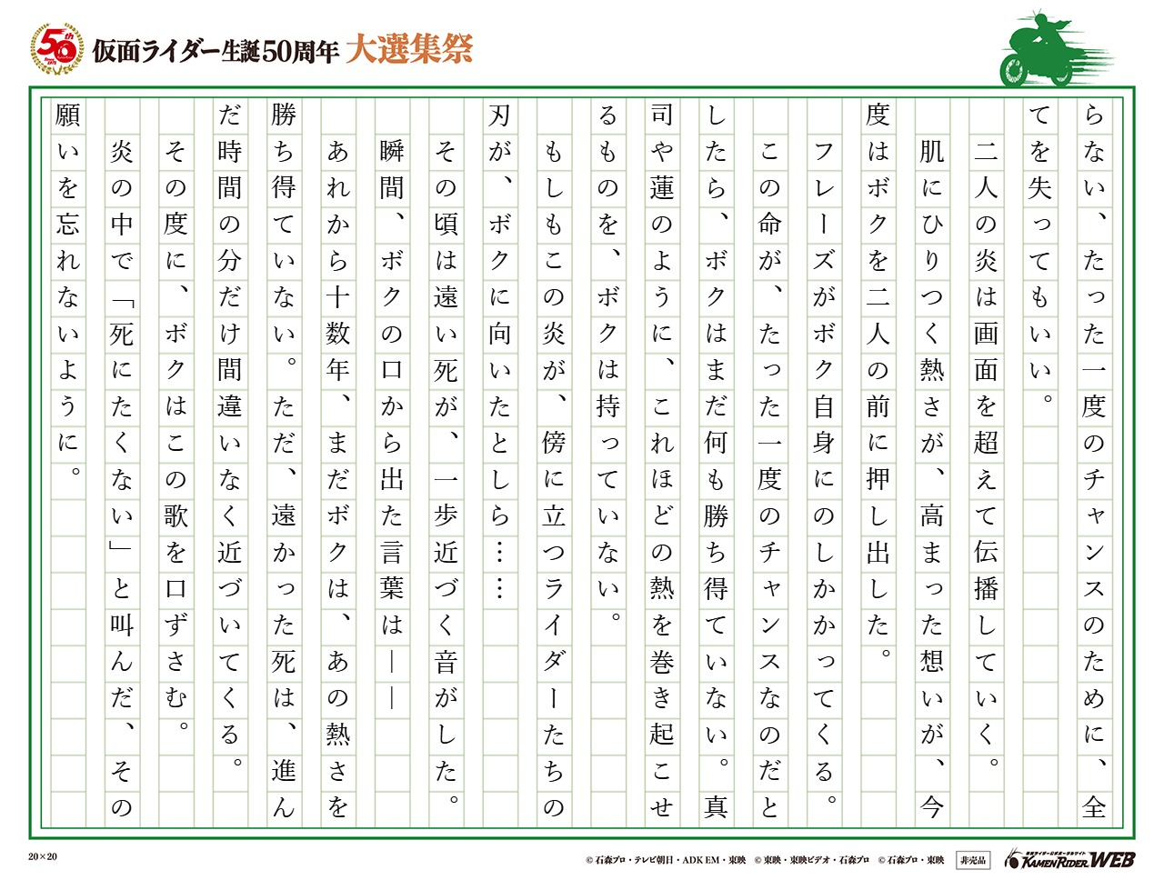 仮面ライダー生誕50周年 大選集祭 私のライダーソング みんなの投稿 仮面ライダーweb 公式 東映
