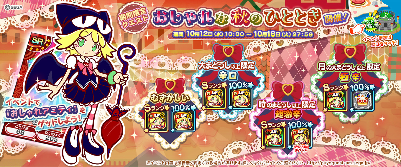 イベントクエスト おしゃれな秋のひととき 10月12日更新 ぷよぷよ クエスト アーケード おしらせ