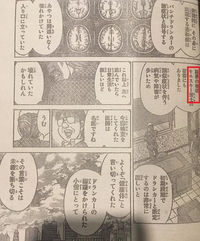 すが太 はじめの一歩にあしたのジョーのキニスキー博士の名前が出てて笑う キニスキー博士と言えば斯界の権威という枕詞 ここ重要