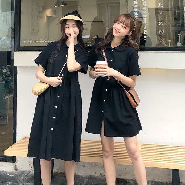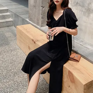 閨蜜裝長版短版洋裝連身裙連身短裙復古洋裝時尚洋裝素色氣質顯瘦chic學院風洋裝連身長裙過膝長洋裝