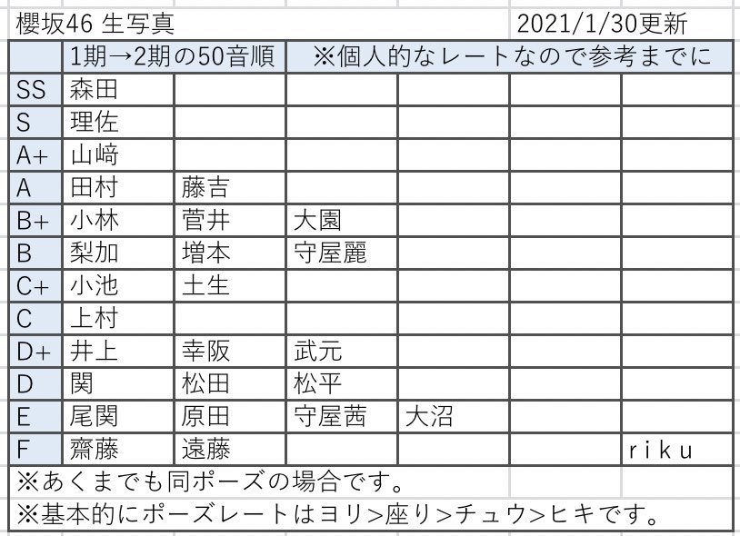 櫻坂46生写真レート表 乃木坂生写真のすゝめ レート解析 Part 2