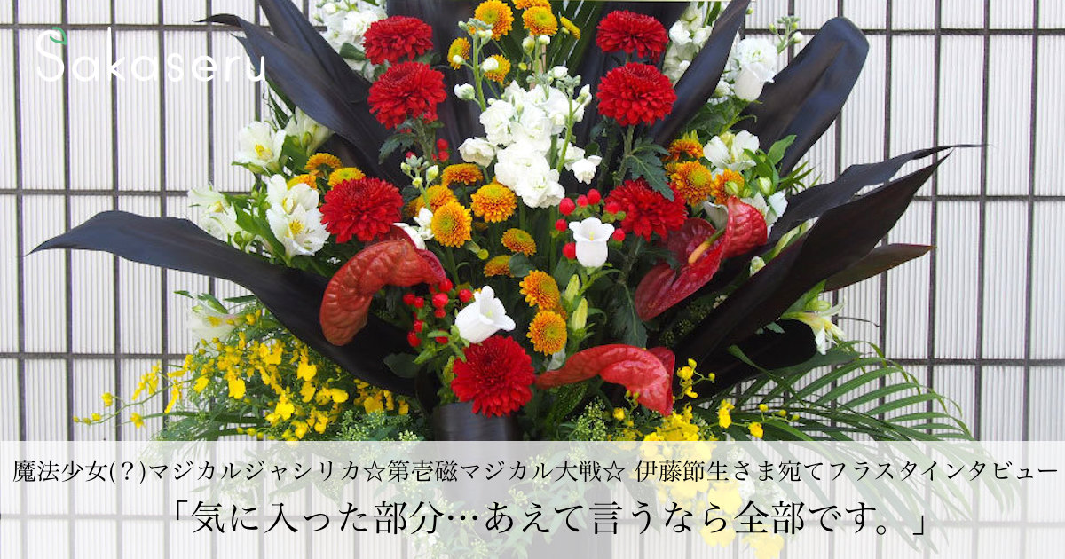 舞台 魔法少女 マジカルジャシリカ 第壱磁マジカル大戦 伊藤節生様宛てフラスタインタビュー Sakaseru舞台 楽屋花お客様インタビュー