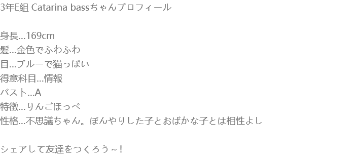 あんさん 2年e組 あんさんちゃんプロフィール 身長 183cm 髪 銀色でさらさら 目 グレーで眠たげ Best Friends