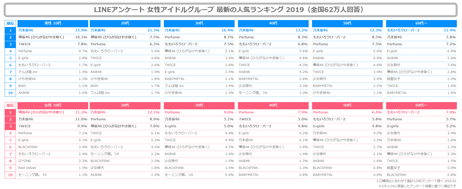 最新 女性アイドルグループ総合ランキング Lineリサーチ調査レポート リサーチノート Powered By Line