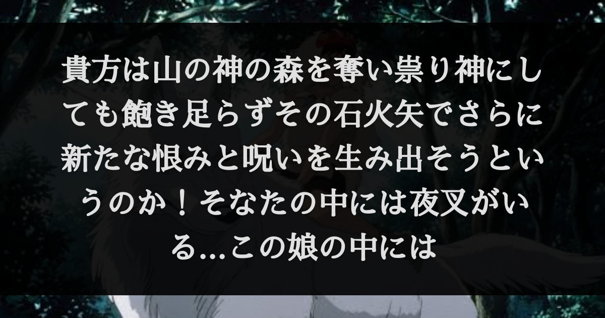 貴方は山の神の森を奪い祟り神にしても飽き足らずその石火矢でさらに新たな恨みと呪いを生み出そうというのか そなたの中には夜叉がいる この娘の中には セリフデータベース