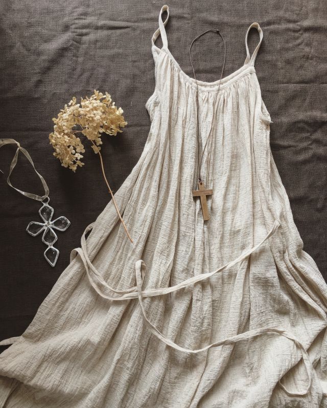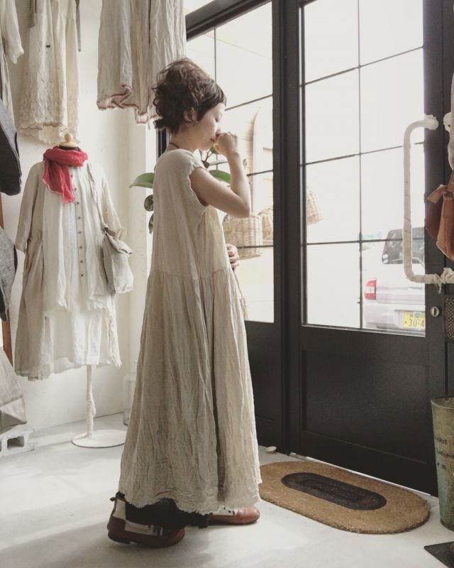 Pollenbienco 生成りくしゅくしゅリネンのキャミワンピ Marche De Soeur