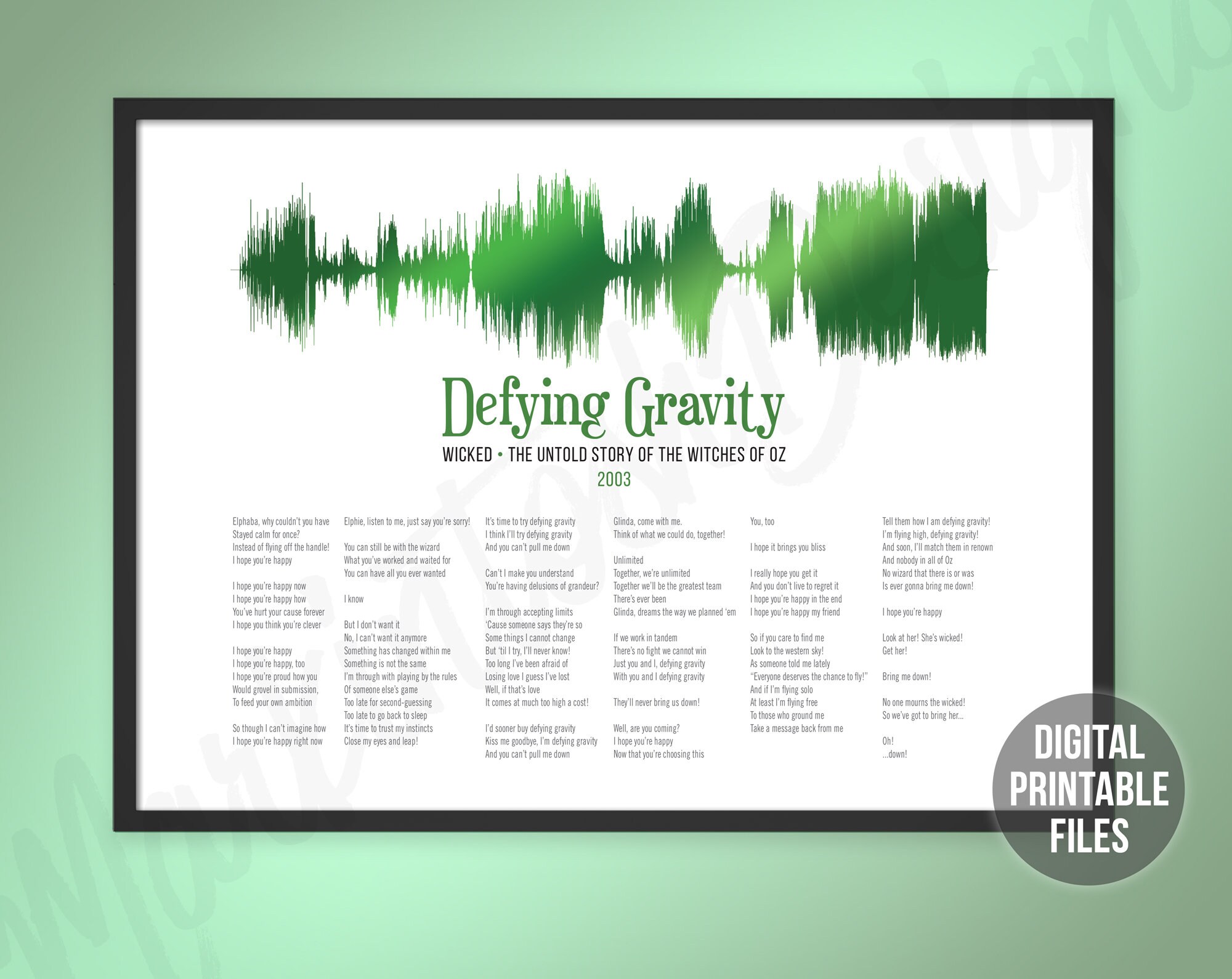 Defying Gravity Sound Wave And Lyrics Art Wicked Printable Etsy