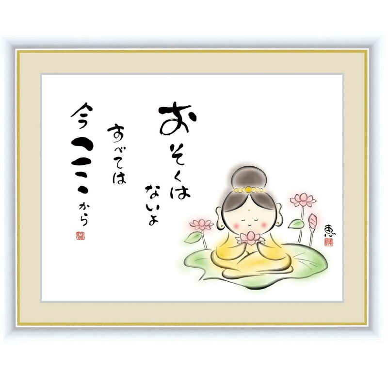 F4サイズ おそくはないよ すべては今ここから 恵風作 しあわせ地蔵 約横42 縦34cm インテリアアート 額絵 こころの癒し絵 G5419 G5419 結納屋さん 通販 Yahoo ショッピング