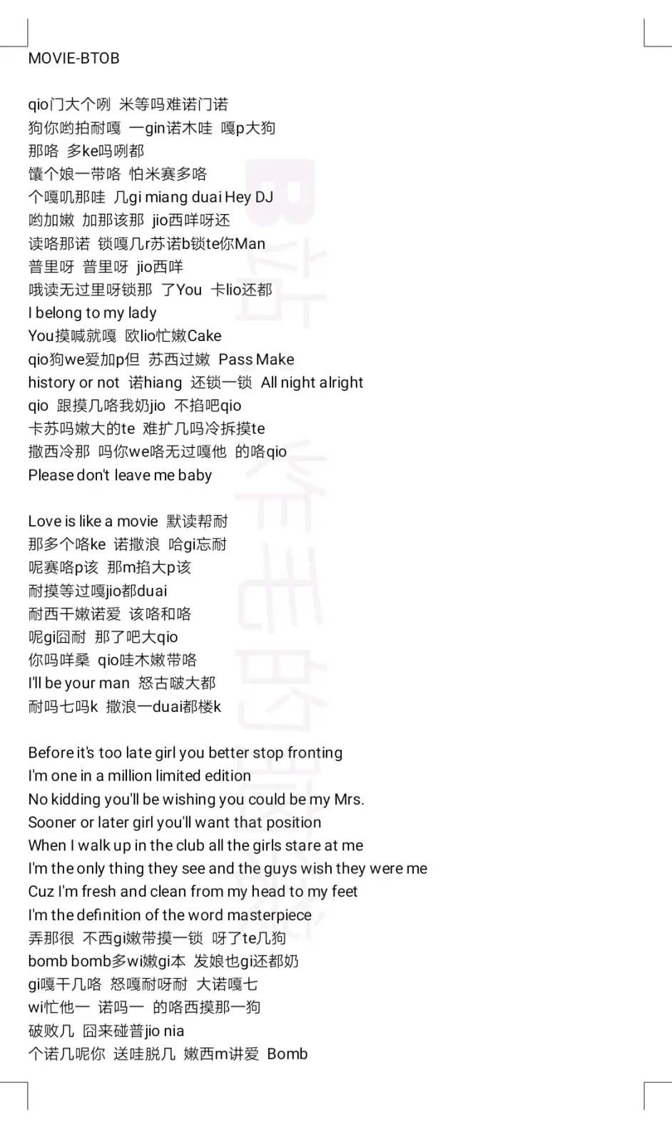 Movie Btob 音译歌词 哔哩哔哩