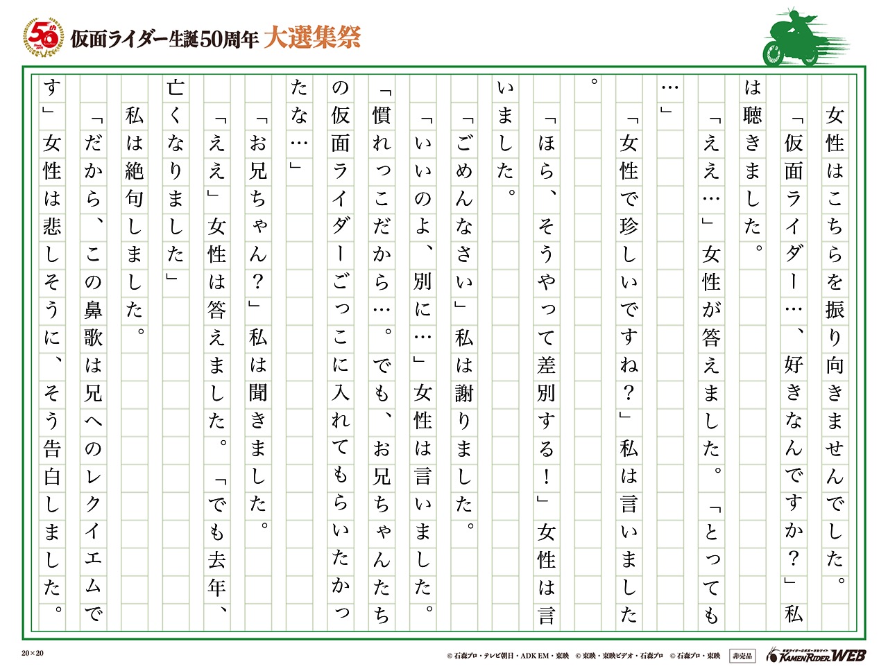 仮面ライダー生誕50周年 大選集祭 私のライダーソング みんなの投稿 仮面ライダーweb 公式 東映