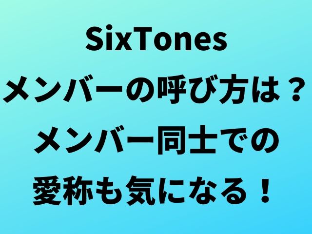 Sixtonesメンバーの呼び方は メンバー同士での愛称も気になる Geinou Blog
