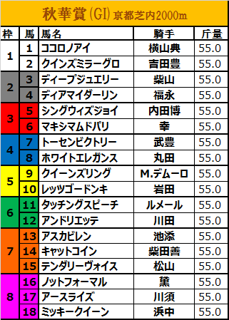 データ競馬馬柱 15秋華賞