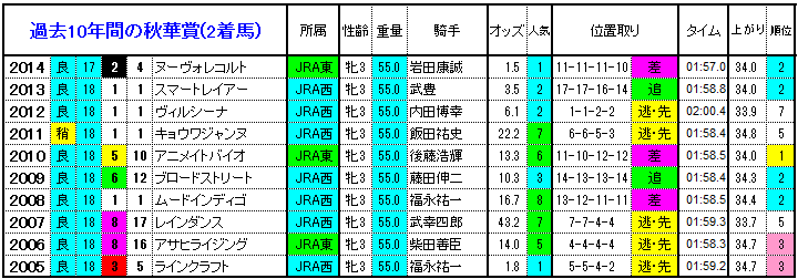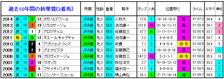 秋華賞15 過去10年の3着内馬のデータ傾向