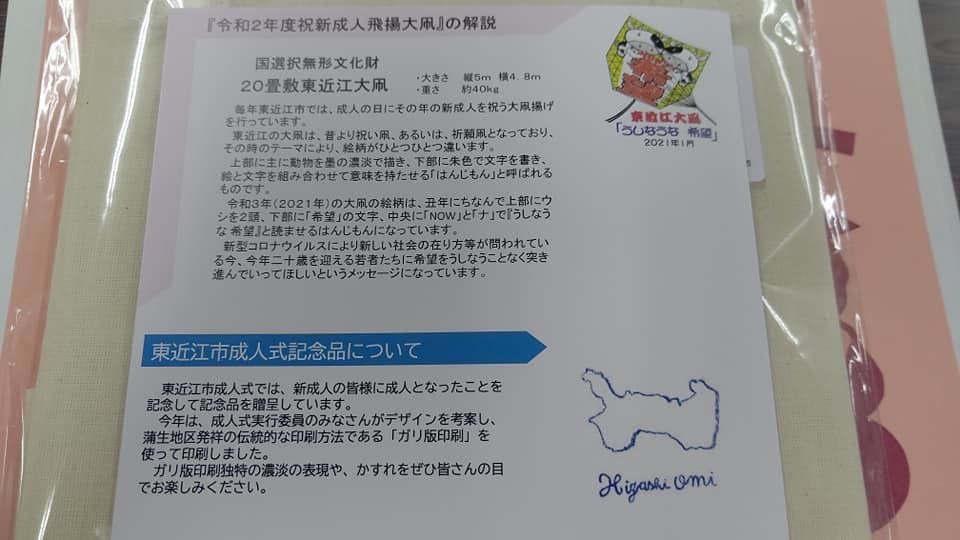 東近江大凧会館ブログ 祝新成人畳敷大凧飛揚 うしなうな 希望