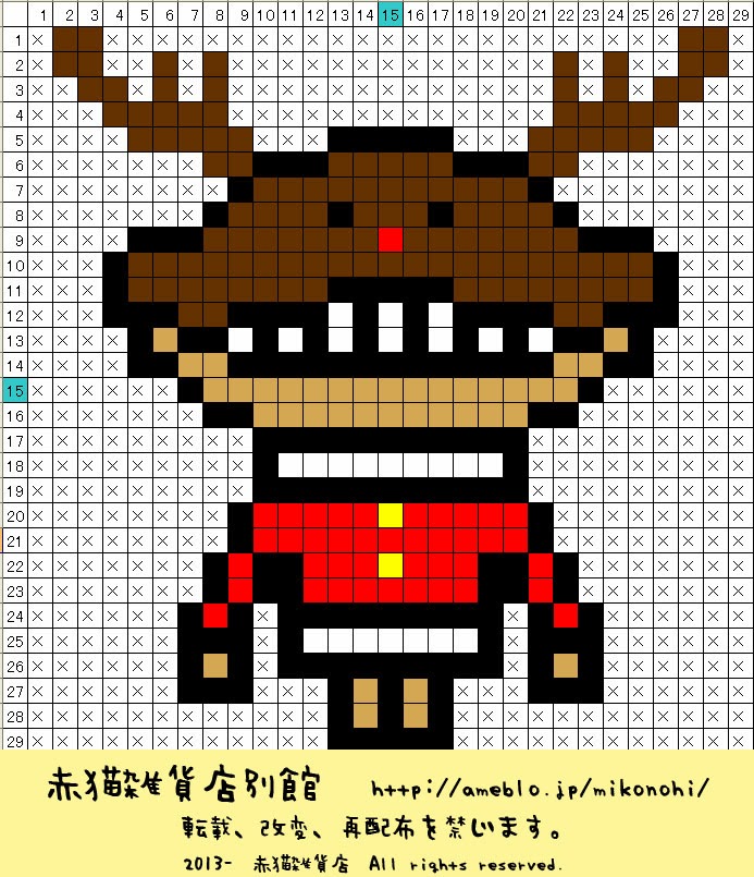 アイロンビーズ図案 Perler Beads Ideas なめこモドキ トナカイver Fauxghi