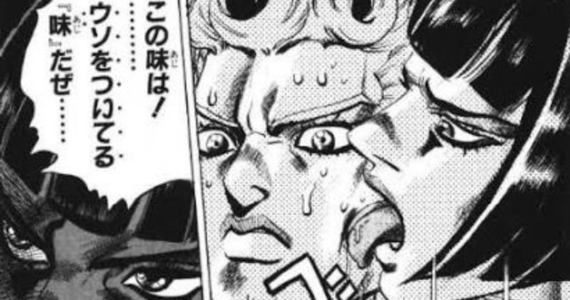 22 今年のエイプリルフールにも様々な企業がユニークな嘘をついたが、そんななか、カルビーがついた嘘が真実になってしまった。 そう、 架空の商品だったはずの『ポテチ コンソメW(ワロス)パンチ』が現実のものになった のだ。 嘘から1週間後には. ブチャラティ「この味は!ウソをついてる『味』だぜ」第五部 ジョジョの奇妙な冒険 黄金の風 アニメ 広瀬康一vsジョルノ第五部 ジョジョの奇妙な冒険 黄金の風. この味は嘘をついてる味だぜ 動物 Close 7 Posted by u/deleted 4 years ago Archived この味は嘘をついてる味だぜ.