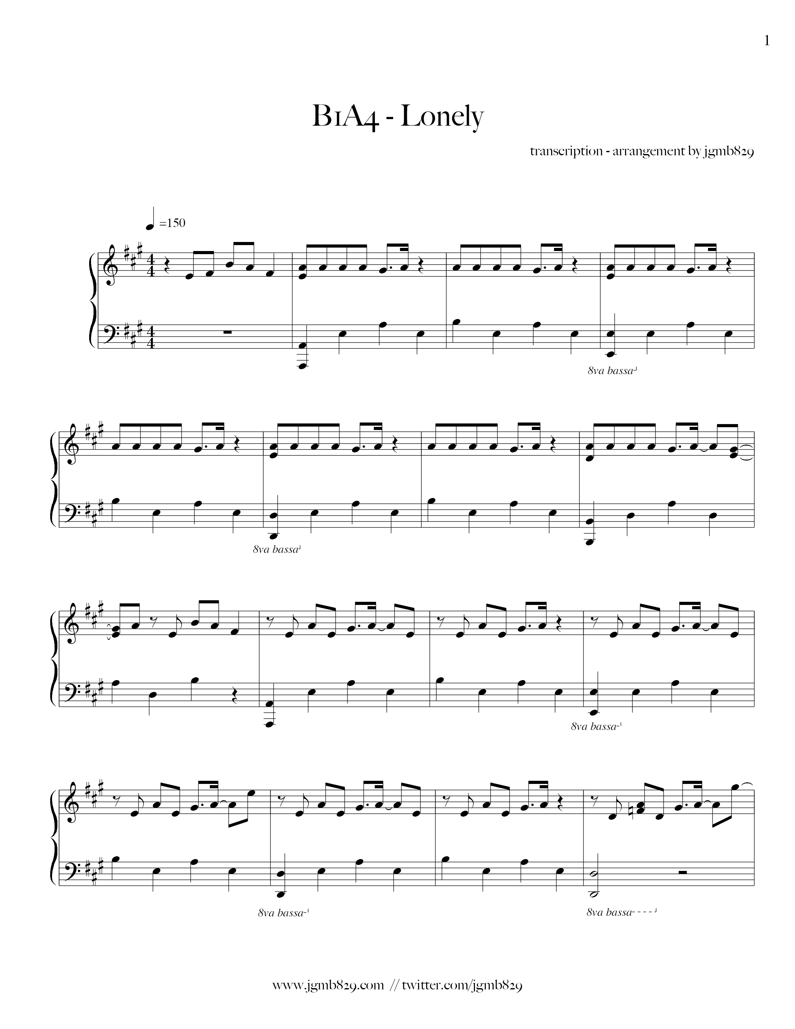 B1a4 Lonely 琴譜 五線譜pdf 香港流行鋼琴協會琴譜下載