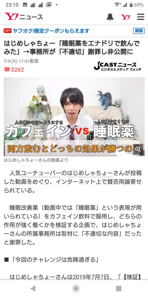 はじめしゃちょーのyoutube動画に 通報した 危険を伴う 睡眠導入剤とカフェインの同時摂取 に批判殺到 19年7月9日 エキサイトニュース