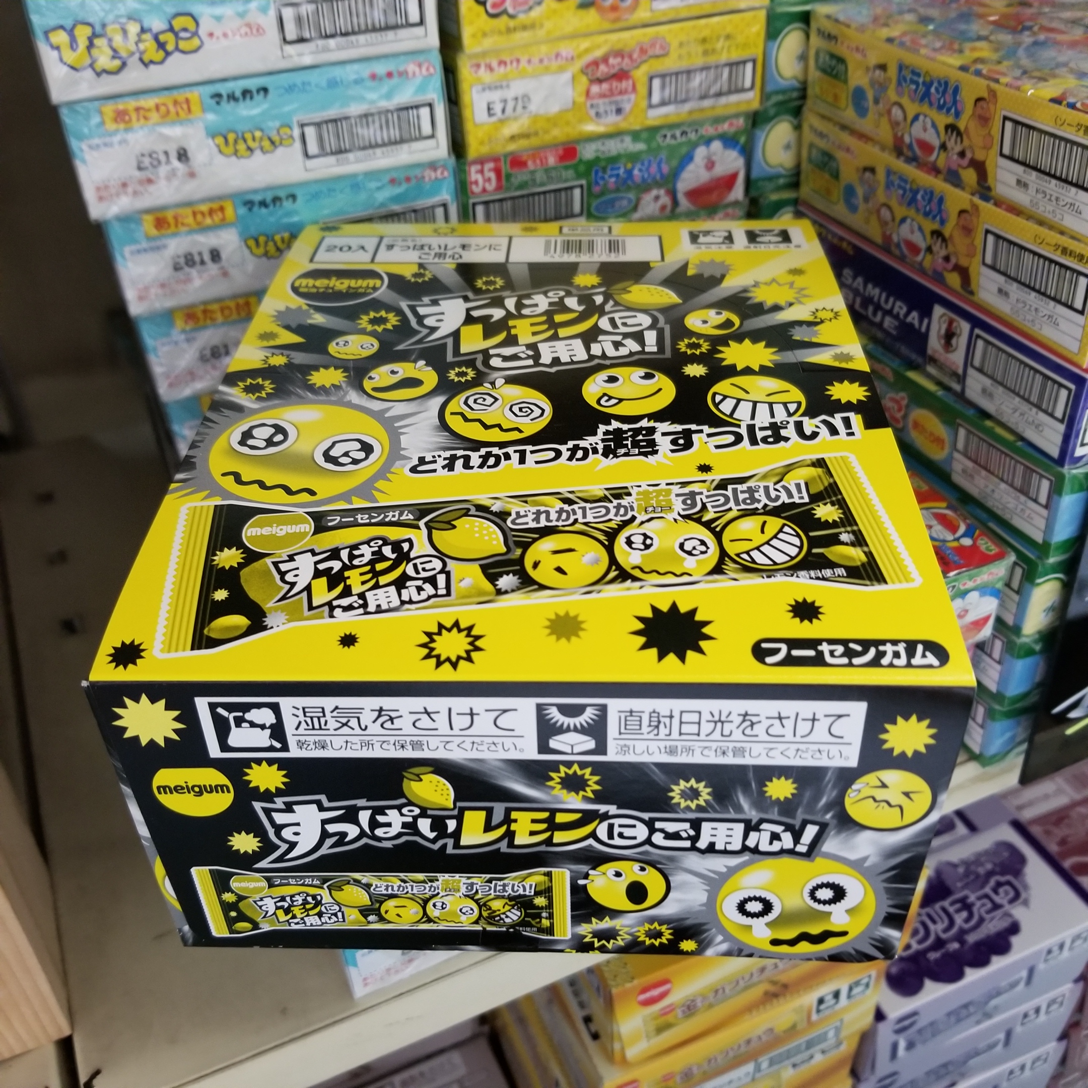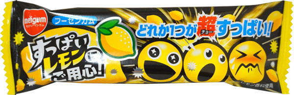 詳細 3個に1個すっぱいガムが隠れている面白いフーセンガムです。 ゲーム感覚で楽しめるレモン味の人気のフーセンガムです。 内容量1袋(3個入)箱入数袋入定価30円箱売定価. 明治チューインガム すっぱいレモンにご用心 3個×袋 5つ星のうち44 27 ¥566 ¥566 (¥28/袋) ¥630 ¥630 6ポイント (1%) まとめトク日用品はまとめておトクに!. Either one bought a super sour gum!.
