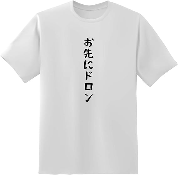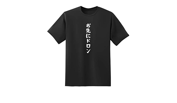 Amazon おもしろtシャツ原宿商店 お先にドロン 白黒 半袖 文字 Tシャツ Tシャツ カットソー 通販