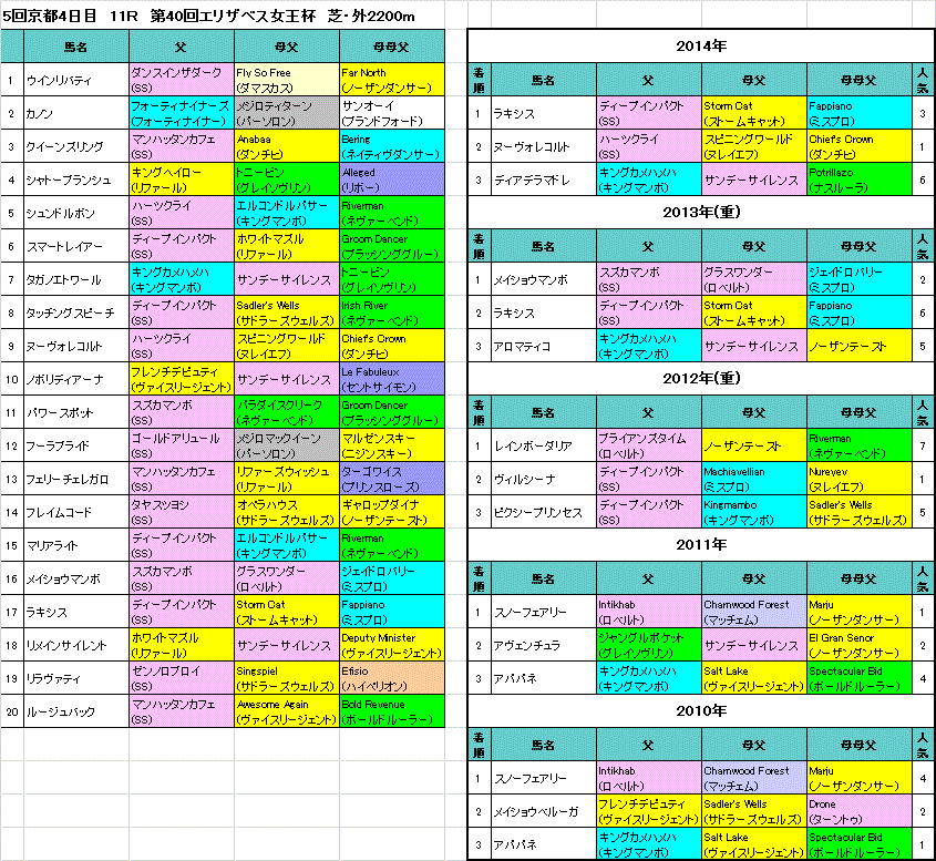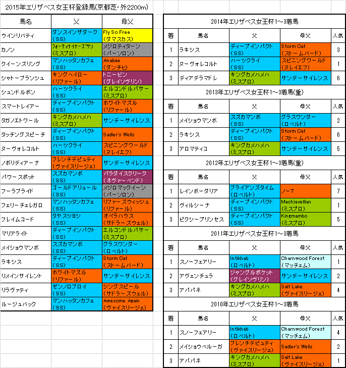 エリザベス女王杯15の出走予定馬と血統表です アナコー 穴 馬を 攻 略するブログ