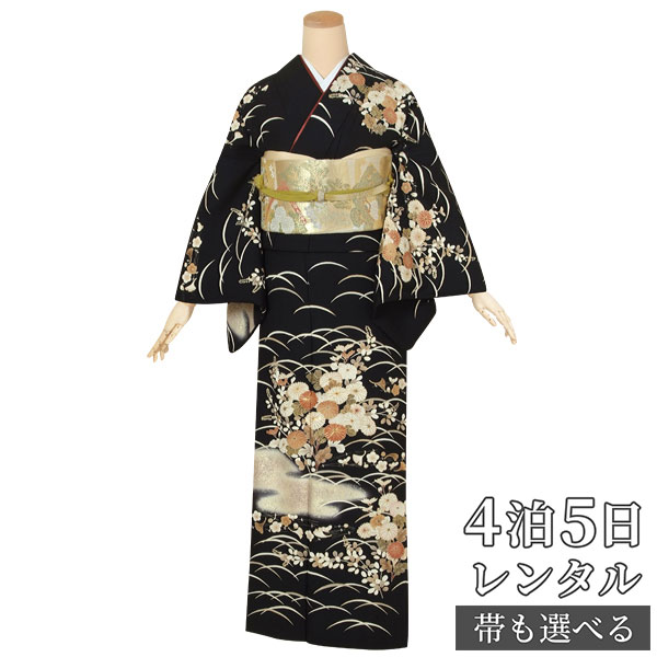 有名人芸能人 訪問着 レンタル 着物レンタル レンタル着物 着物 訪問着レンタル H463 黒 露芝菊模様 正絹 ホテル 式場への配送ok 入学式 入園式 お宮参り 結婚式 七五三 母 ママ 母親 着物 H463 Kalnica Eu