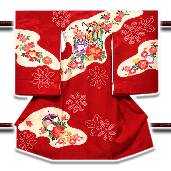 有名人芸能人 初着 七五三 女児 花車 絞り染め 最高級 染め分けボカシ お宮参り 祝着物 正絹 Fah Co Bw