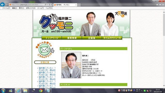 福井謙二グッモニ 文化放送 出演 冷凍食品 西川剛史 14年4月7日 冷凍王子 冷凍生活アドバイザー 西川剛史 冷凍 から健康で豊かな食生活を提案