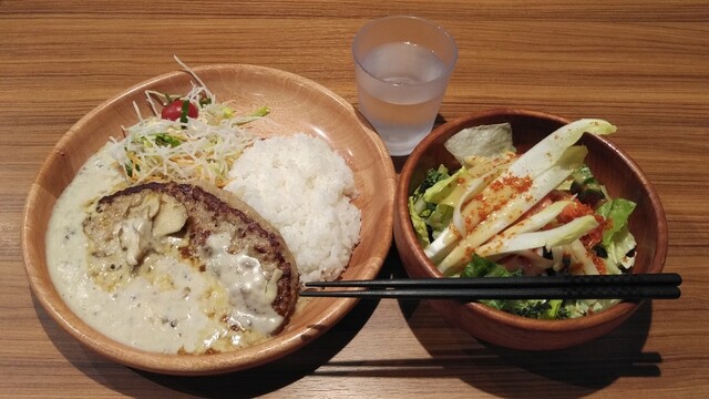 びっくりドンキーの ハンバーグとサラダ 食いしん坊シモさん