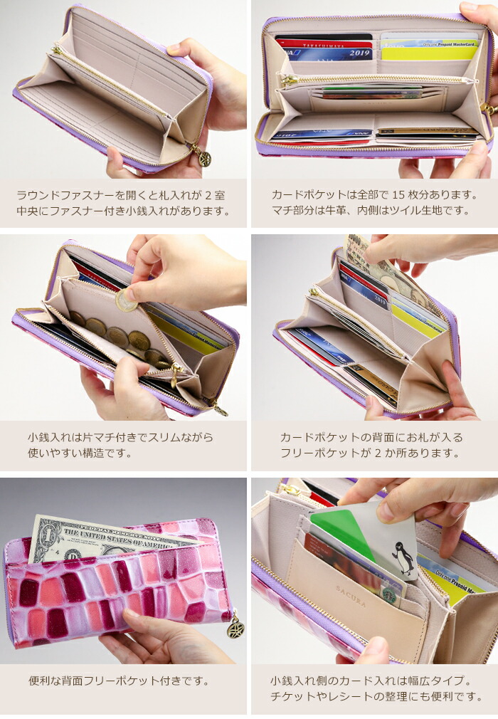 あす楽対応 日本製 長財布 ステンドグラスレザー 艶やかな美麗レザーウォレット 本革製ギフト Sacura サクラ 日本製 エナメル牛革 長財布 ラウンドファスナー長財布 本革 Mystero さくら 日本製 本革 長財布 レディース 本革 長サイフ レディース 本革 財布