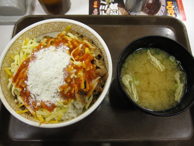 三種のチーズ牛丼並3辛 410 味噌汁 70 すき家 無駄遣いな日々