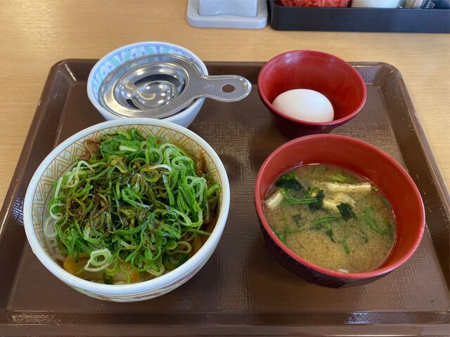 すき家 君津店 牛丼 並 味噌汁 玉子 サラダ Humdrum