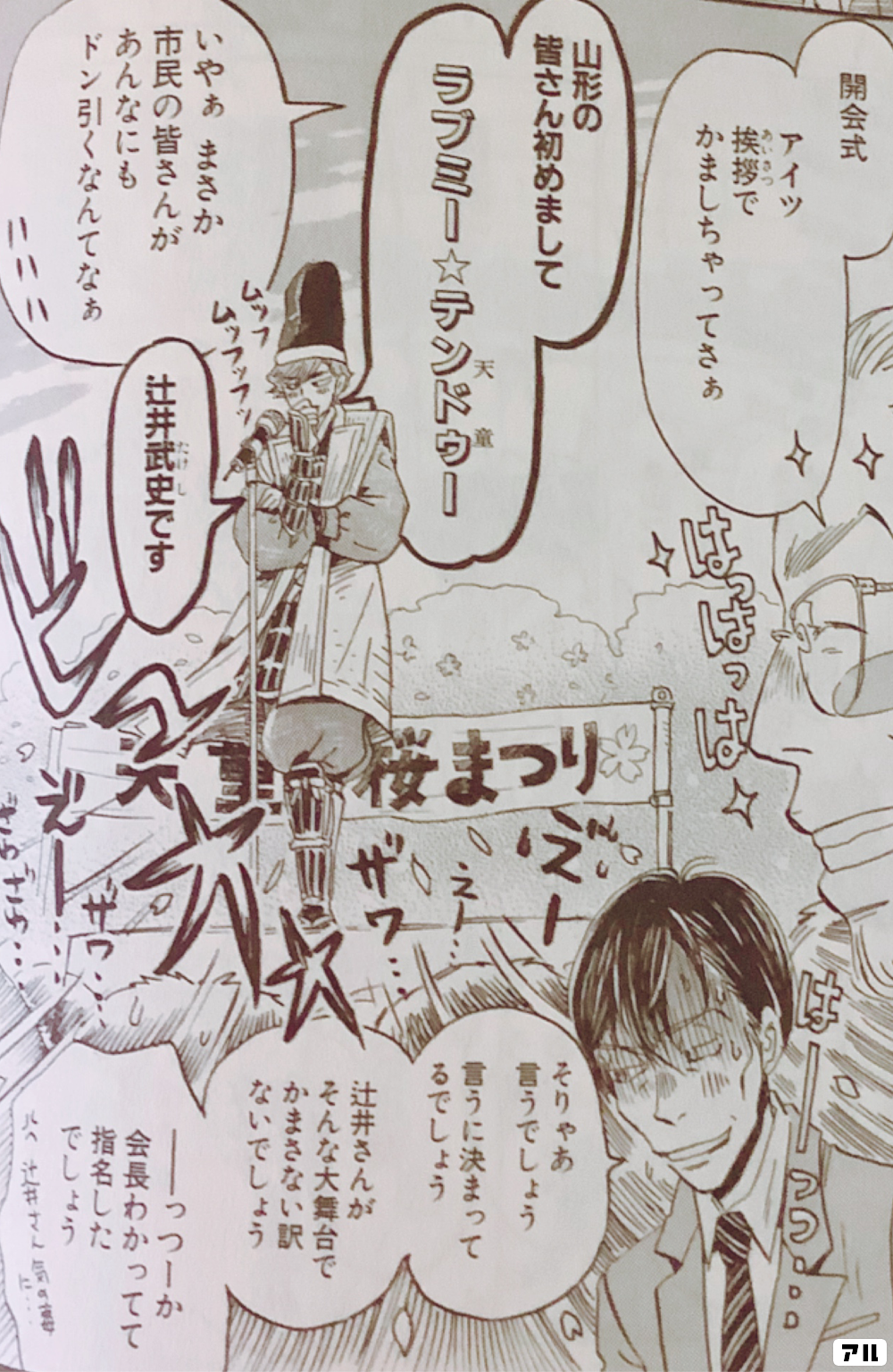 開会式 アイツ挨拶でかましちゃってさぁ 山形の皆さん 初めまして ラブミー テンドゥー いやぁまさか 市民の皆さんが あんなにもドン引くなんてなぁ ハハハ 辻井武史です そりゃ言うでしょう 言うに決まってるでしょう 辻井さんがそんな大舞台で かまさない訳ないで