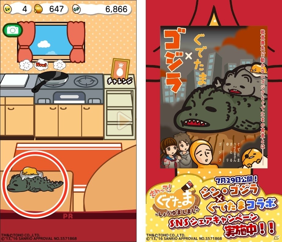 Ios Android さわって ぐでたま しょうゆましまし 映画 シン ゴジラ コラボが開催 ゲーム情報サイト Gamer