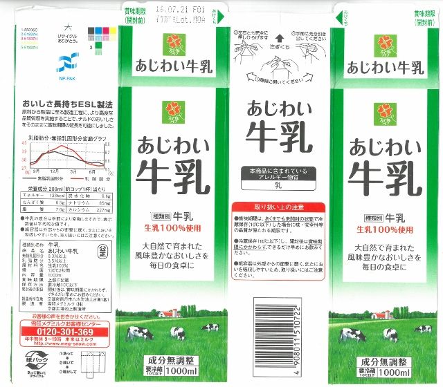 雪印メグミルク あじわい牛乳 16年07月 愛しの牛乳パック