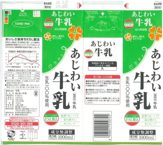 栃酪乳業 あじわい牛乳 12年3月 愛しの牛乳パック