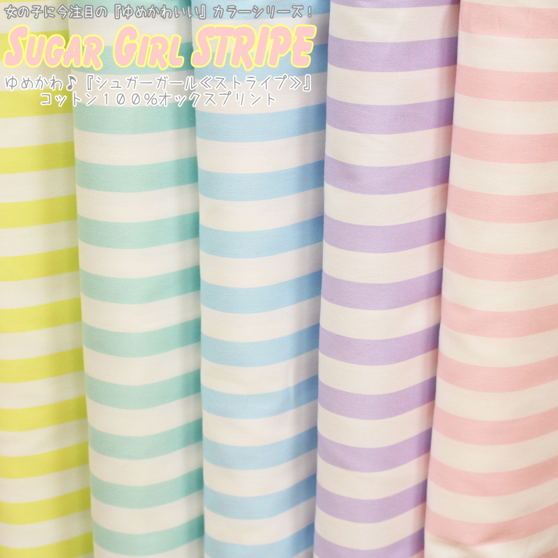 楽天市場 Sugar Girlシリーズ シュガーガール ストライプ コットン100 オックスプリントゆめかわ ゆめかわいい 入園 入学 通園 通学 女の子 子供 キッズ 生地 ハンドメイド 手づくり 手作り 定番 手芸と生地 の店 いすず