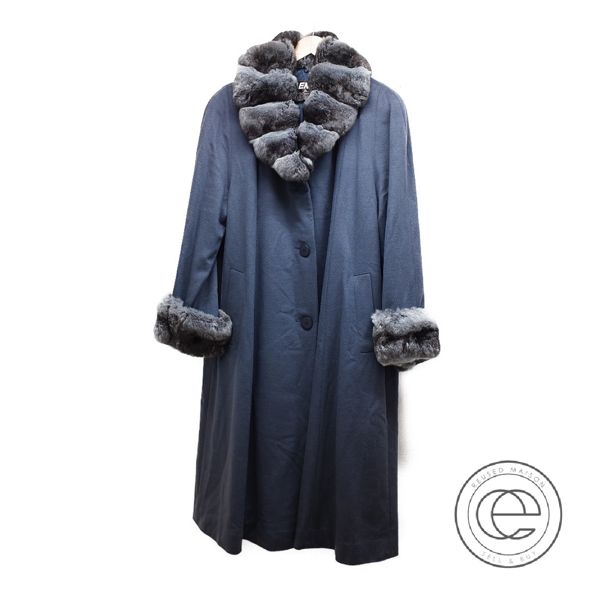 中古 レディース カシミヤ100 コート ジャケット エンバ エコスタイル チンチラファー付 ネイビー ブランドリサイクル シングルコート Emba Emba レディース 襟 袖